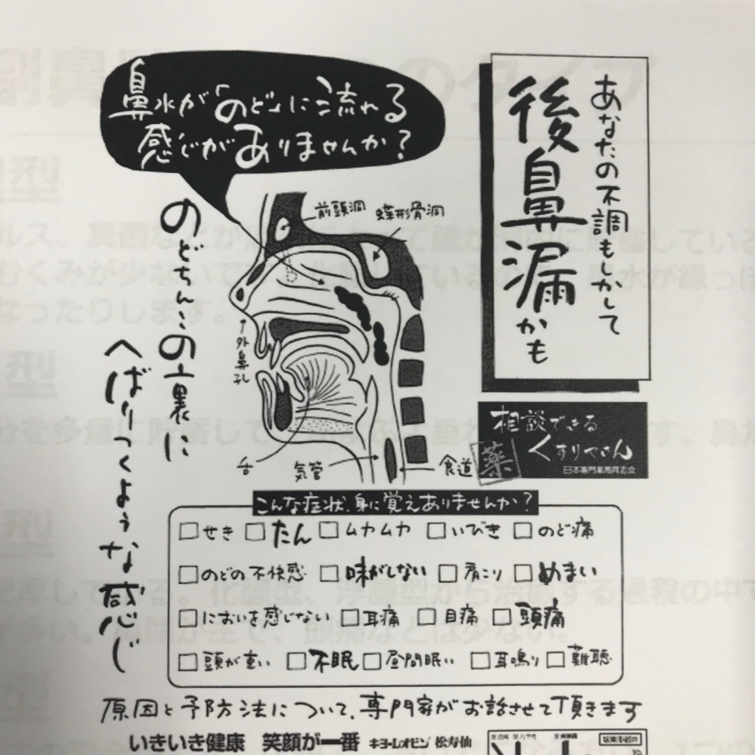 漢方相談スガヌマ薬局の後鼻漏のチラシ