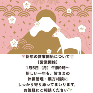 新しい一年も、漢方相談・体調管理を通じて、皆さまの健康に寄り添ってまいります。